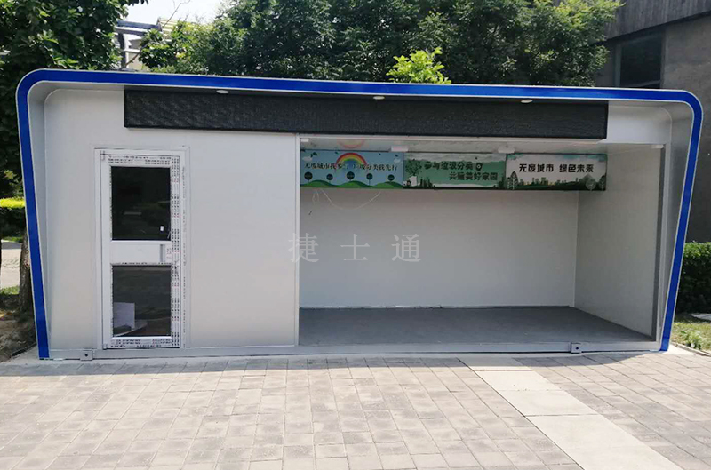 天津生態(tài)城垃圾分類驛站由捷士通崗?fù)S家設(shè)計(jì)生產(chǎn),已于六月底安裝完畢