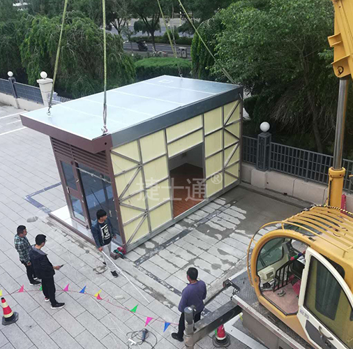 赤峰稅務(wù)局為方便群眾快遞的寄存及拿取,特在門口設(shè)立一處快遞寄存室,此款崗?fù)?/a>為拼接式,因尺寸較大,運(yùn)輸問題,遂做成拼接式房屋,將房屋分成兩部分,運(yùn)輸?shù)截浐?,由現(xiàn)場人員現(xiàn)場施工拼接,無需擔(dān)心縫隙漏雨等問題,快速方便