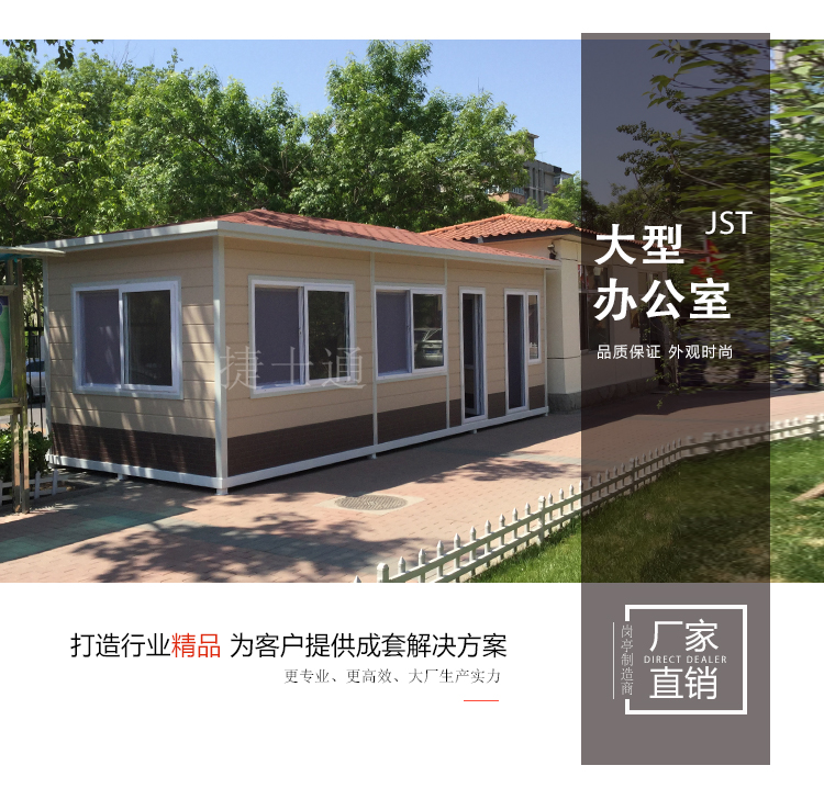配置:整體鋼骨架焊接,屋頂鍍鋅板噴涂,外鋪彩色油氈瓦,塑鋼門窗、漏電保護器、PVC吊頂、復合木地板、照明燈、插座等。(如需空調、斷橋鋁門窗、隔間等特殊配置請聯(lián)系客服!)