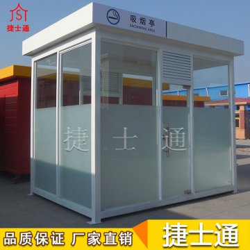 標(biāo)準(zhǔn)配置 :屋頂鍍鋅板靜電噴涂,PVC吊頂,墻體玻璃材質(zhì)(鋼化、中空、有色玻璃等可定做),照明燈,漏電保護(hù)器,插座組,開(kāi)關(guān),長(zhǎng)凳,煙灰缸(如需空調(diào),排風(fēng)扇請(qǐng)聯(lián)系客服。咨詢電話:15822882616,公司網(wǎng)址:www.wpjkoc.com。