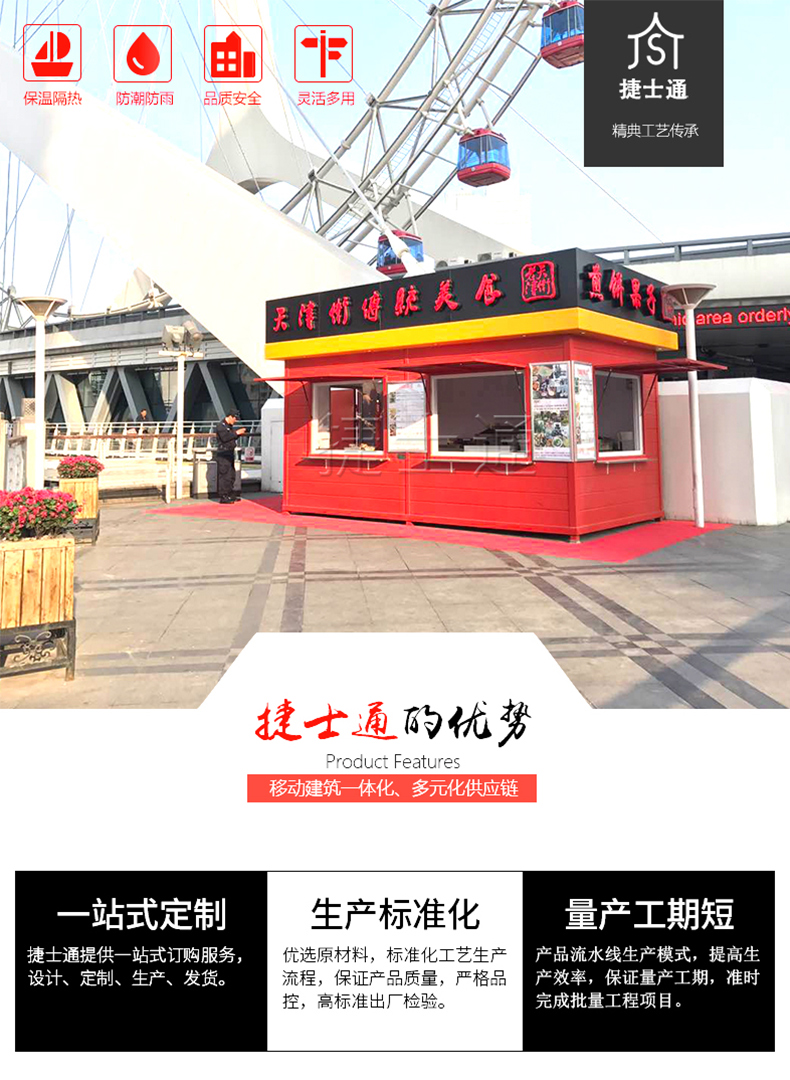 景區(qū)可根據(jù)風(fēng)格使用不同顏色的售賣亭,可以增加客戶好感度,增加售賣量,也可以起到吸引客戶的作用,所以顏色鮮艷是非常重要的??!
