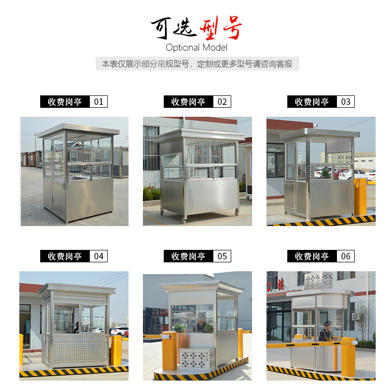 在選擇不銹鋼收費崗亭的時候,首先就是看看自己的工程是不是適合不銹鋼的收費崗亭,還是選用鍍鋅板氟碳漆的收費崗亭,因為不銹鋼的收費崗亭都是原色為主,鍍鋅板氟碳的一般是多色為主。